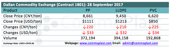 Dalian Commodity Exchange: 28 September 2017