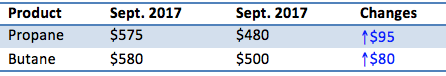 Saudi Aramco announced October propane prices with increases