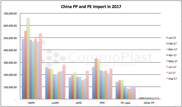 China's PP and PE Import for August posted healthy increases