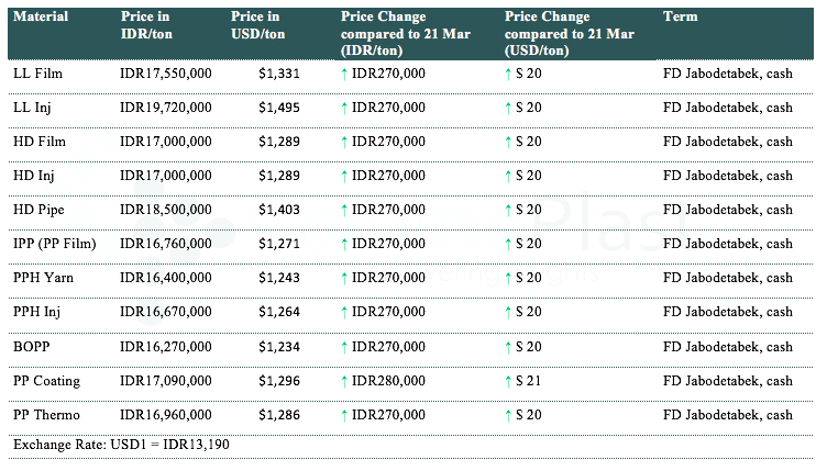 Indonesia's major implemented additional hike on local PP and PE offers