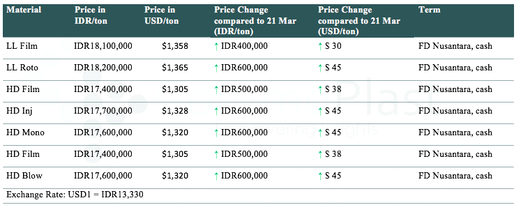 Another major producer imposed price increase for PE in local Indonesia