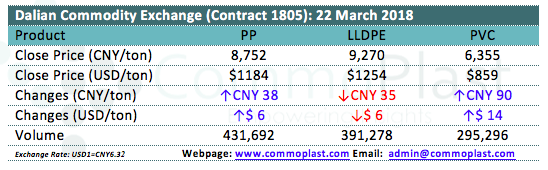 Dalian Commodity Exchange: 22 March 2018