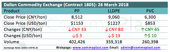 Contract number 1805 on Dalian Commodity Exchange on 26 March 2018 settled as following:
