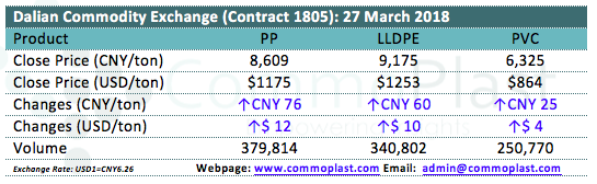Contract number 1805 on Dalian Commodity Exchange on 27 March 2018 settled as following: