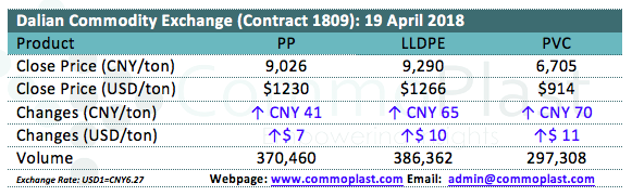Contract number 1809 on Dalian Commodity Exchange on 19 April 2018 settled as following: