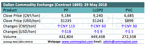 Contract number 1809 on Dalian Commodity Exchange on 29 May 2018 settled as following: