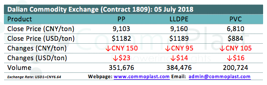 Contract number 1809 on Dalian Commodity Exchange on 05 July 2018 settled as following: