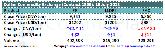 Contract number 1809 on Dalian Commodity Exchange on 16 July 2018 settled as following: