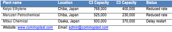 Looking at the supply side, sources reported production issues at major Japanese operators that bite into spot availability. Due to unspecified mechanical glitches, both Keiyo Ethylene and Maruzen Petrochemical were forced to slash operating rate to 70% late last week and might remain in this condition for the next two to three months. Meanwhile, Mitsui Chemical delayed the restart to mid-August after a fire hit the petrochemical complex on 21 June 2018. The market is expected to lose nearly 180,000 tons of ethylene production from these production hiccups.