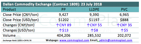 Dalian Commodity Exchange: 23 July 2018