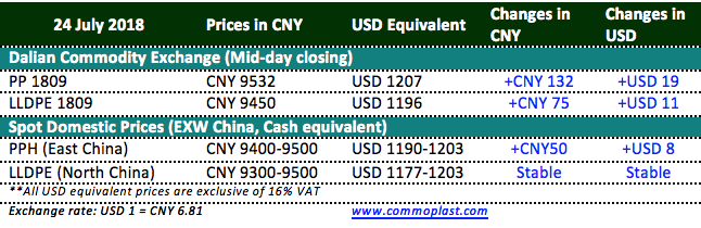 Dalian Commodity Exchange maintains the firmness by the end of the morning session with September delivery contract for PP jumped three digits in values. Such development continues to support spot market, however, the extent of price increment in spot ground remains limited.