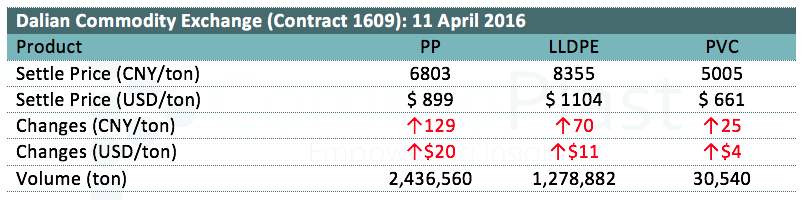 Dalian Commodity Exchange: 11 April 2016