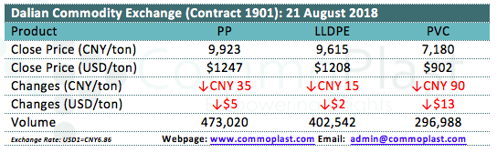 Dalian Commodity Exchange: 21 August 2018