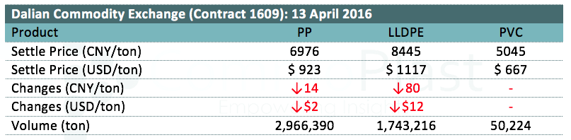 Dalian Commodity Exchange: 13 April 2016