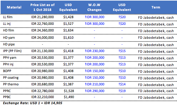 New PP, PE offers in local Indonesia market see additional increases