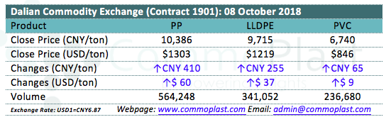 Contract number 1901 on Dalian Commodity Exchange on 08 October 2018 settled as following: