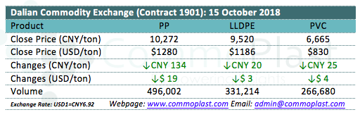 Contract number 1901 on Dalian Commodity Exchange on 15 October 2018 settled as following: