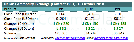 Dalian Commodity Exchange: 16 October 2018