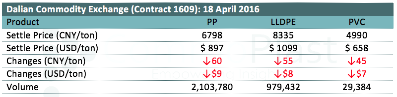 Dalian Commodity Exchange: 18 April 2016