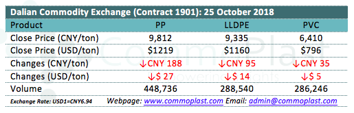 Dalian Commodity Exchange: 25 October 2018