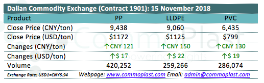 Contract number 1901 on Dalian Commodity Exchange on 15 November 2018 settled as following: