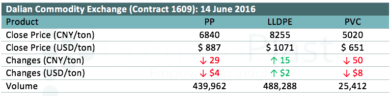 Dalian Commodity Exchange: 14 June 2016