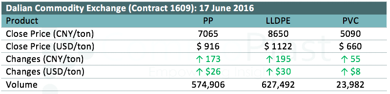Dalian Commodity Exchange: 17 June 2016