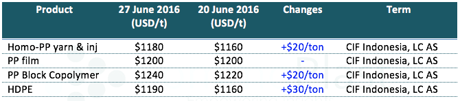 Major Thailand producer lifted PP and HDPE prices to Indonesia