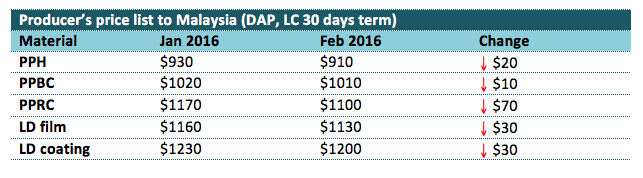 The producer is currently running their PP plant at reduced rate due to short of propylene feedstock after the unexpected shutdown of Shell’s naphtha cracker. Besides, market sources also reported that the producer is planning for a major maintenance shutdown mid of 2016, however, there is no official confirmation on this matter yet.